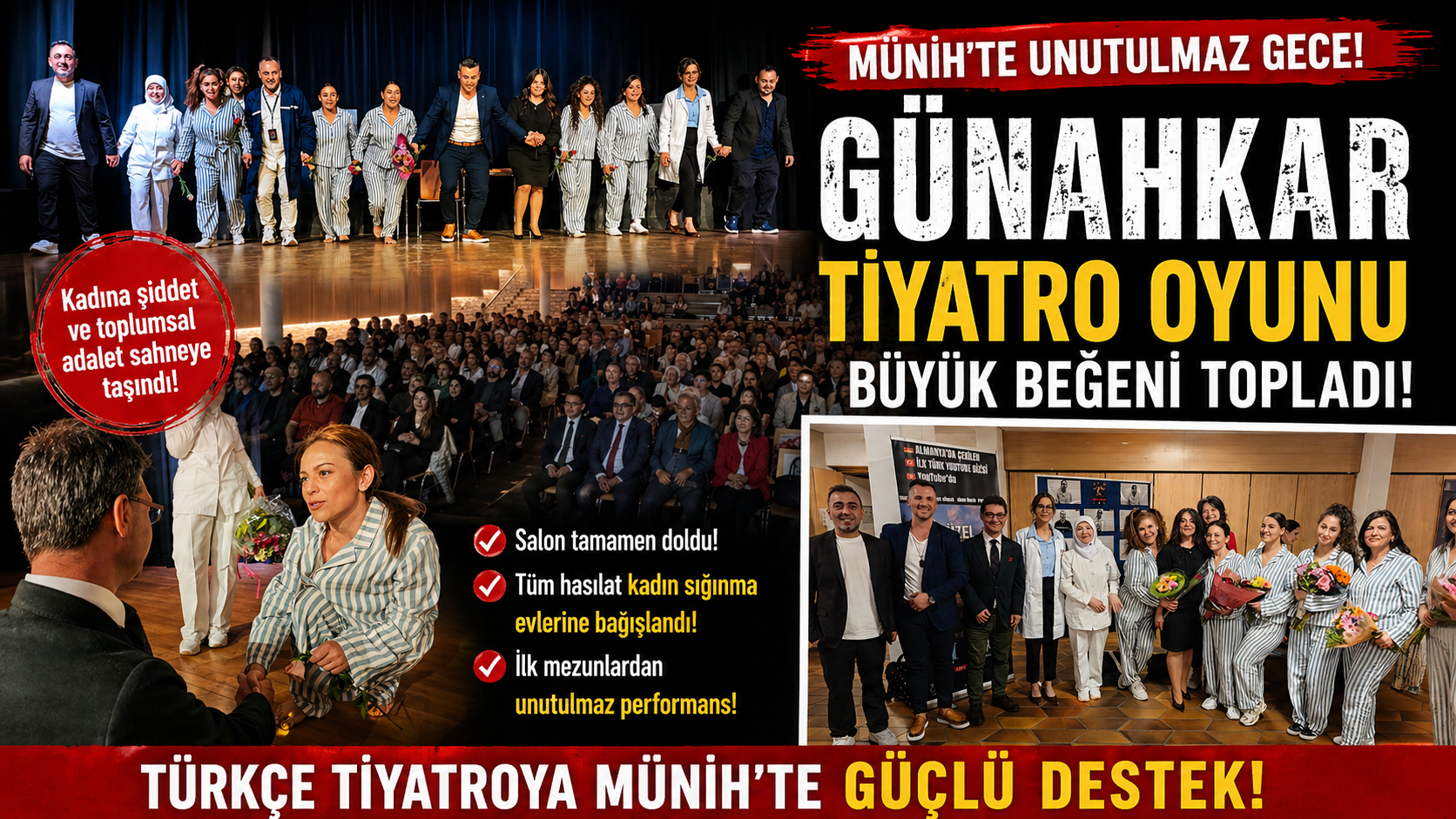 Genç yeteneklerin sahne aldığı, güçlü bir toplumsal mesaj içeren ve sosyal sorumluluk bilinciyle hayata geçirilen Günahkar tiyatro oyunu, Münih’te unutulmaz bir gala gecesine imza attı. Sanatın dönüştürücü gücünü bir kez daha ortaya koyan bu proje, hem izleyicilerden tam not aldı hem de önemli bir farkındalık yarattı.